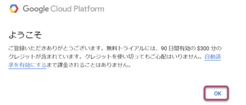 Google Cloud Platform(GCP)のアカウント作成はこれで完了です。